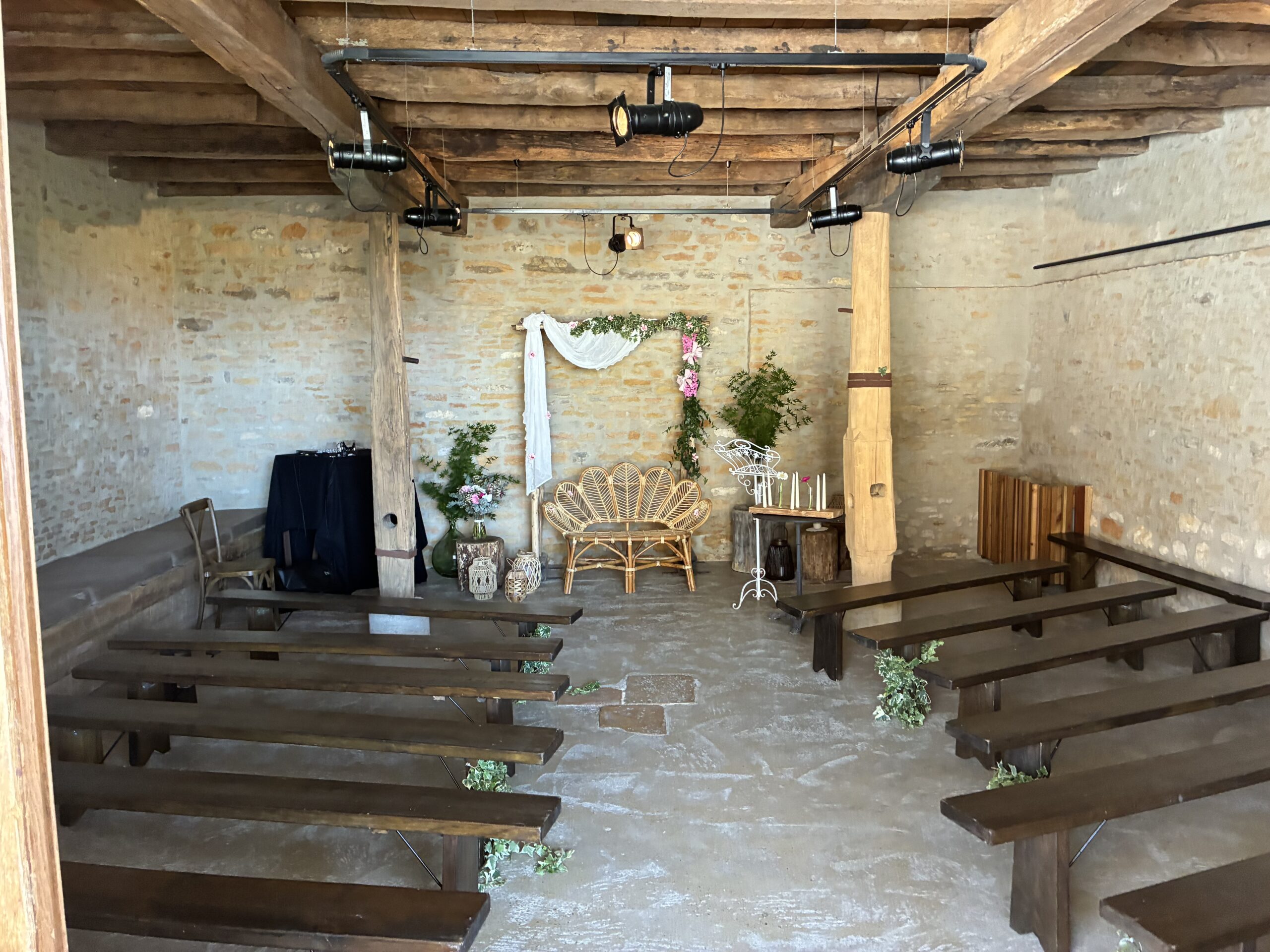 Grange restaurée de 50 m2 avec charpente en bois. Grande banquette (couchage des enfants possible….).