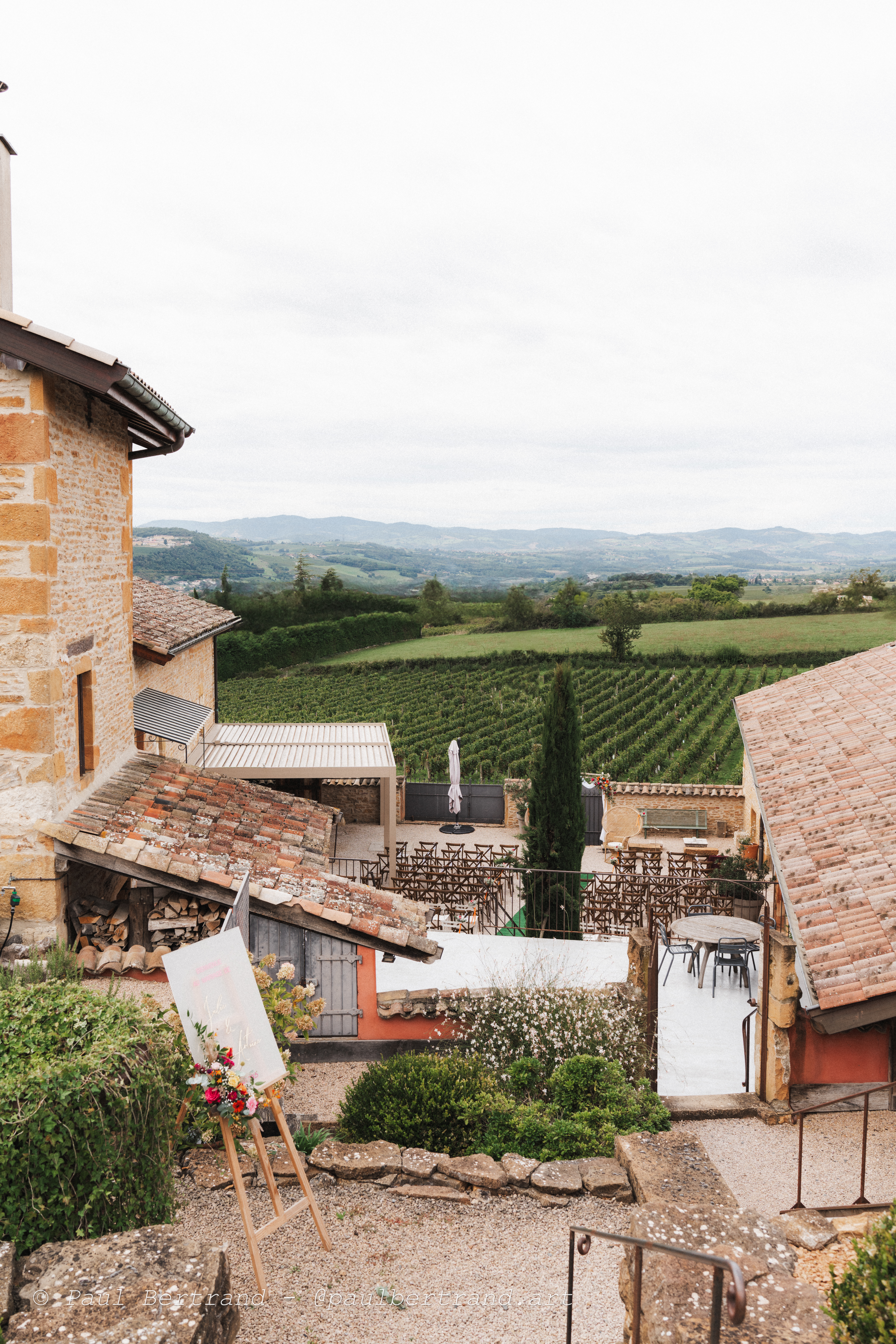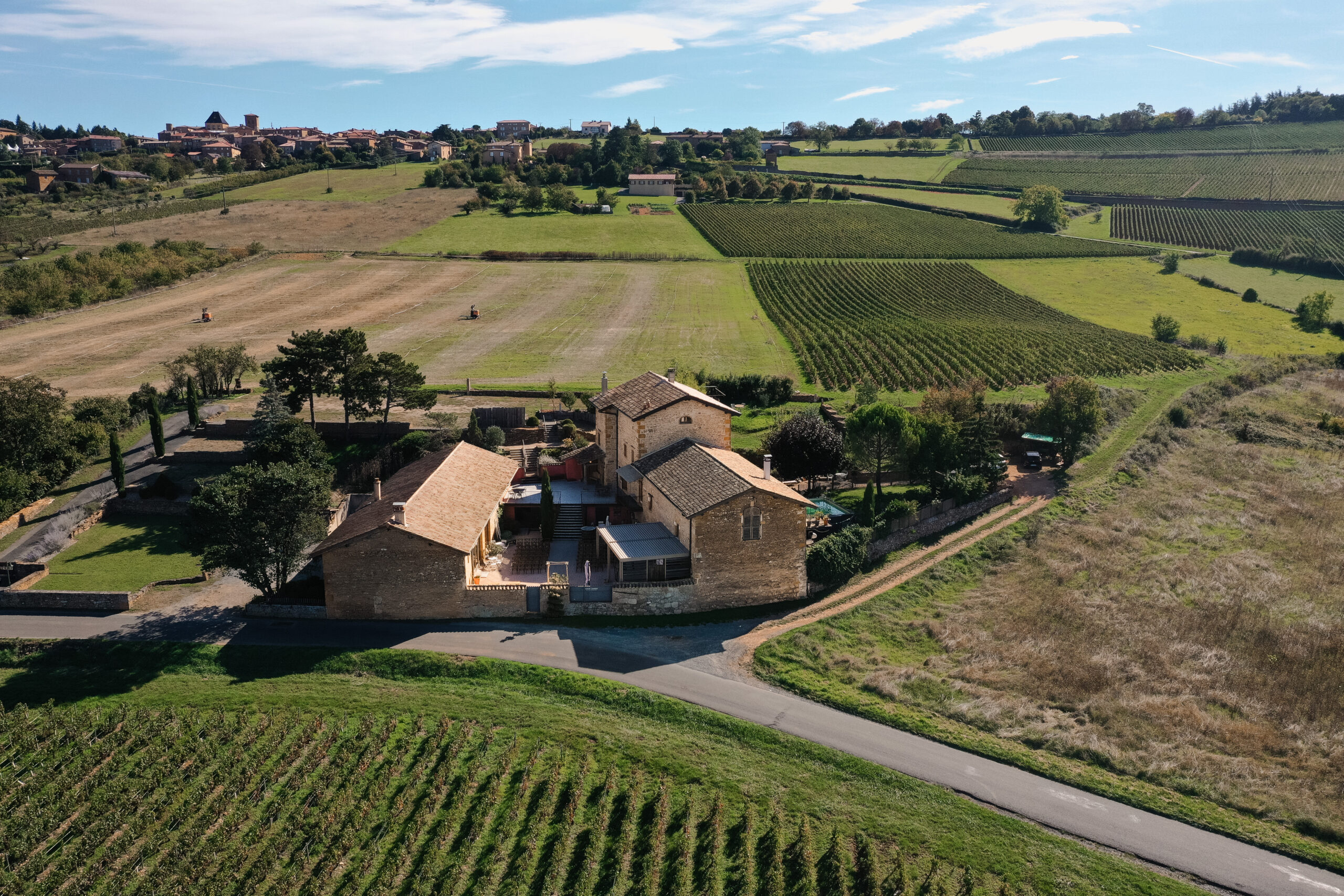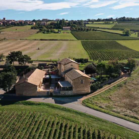 Sur les vignes et l’horizon, depuis la cour…