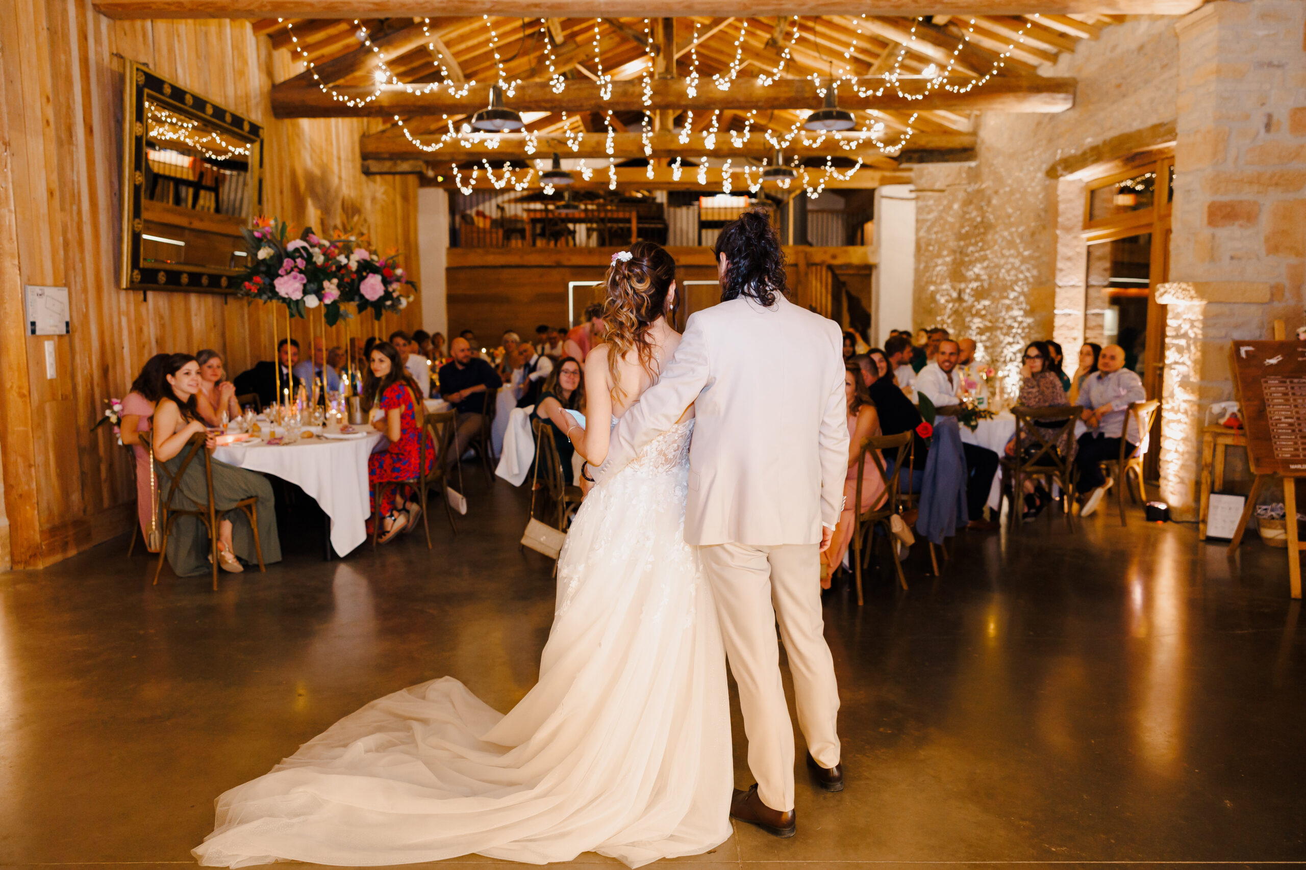 Charpente apparente avec guirlandes lumineuses en permanence, inclus dans le tarif.